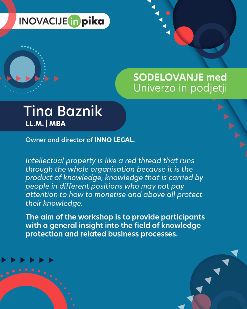 Predavateljica: Tina Baznik, mag. prava, MBA, lastnica in direktorica INNO LEGAL